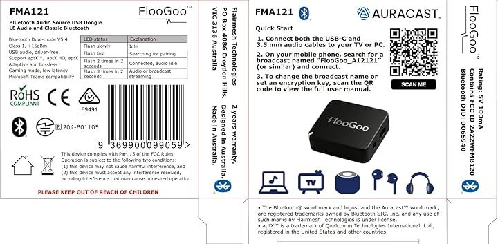FMA120/FMA121は、スマートフォン、ノートパソコン、テレビ、Switchなどのゲーム機、その他のオーディオ機器など、幅広いデバイスのアップグレードを目的として設計された、デュアルモードBluetooth 5.4 USBオーディオドングルです。