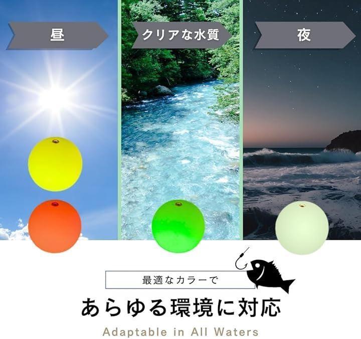 昼間は赤や黄、透明度の高い水質では緑、夜釣りには夜光が最適で、あらゆる環境においてウキが確認しやすくなります。
