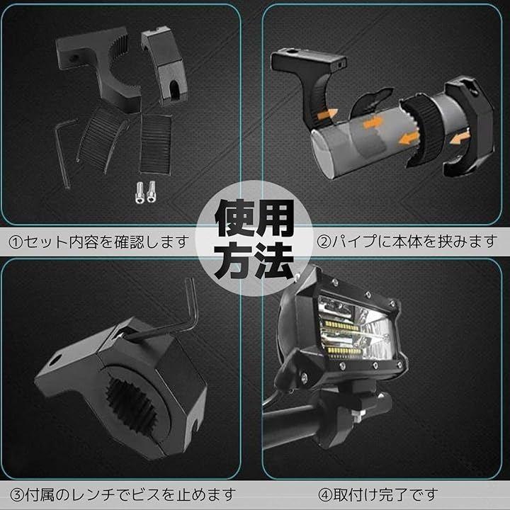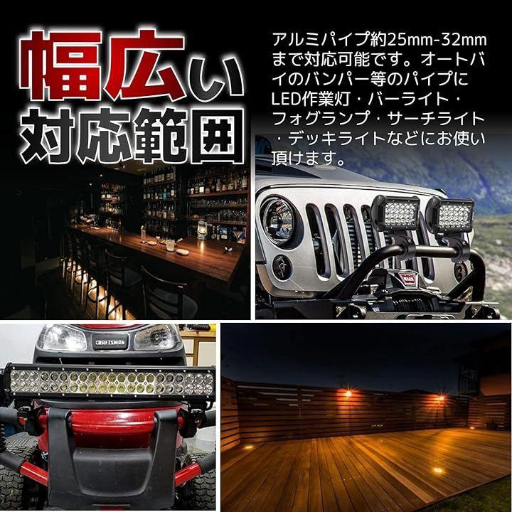 オートバイのバンパー等のパイプにLED作業灯・バーライト・フォグランプ・サーチライト・デッキライトなどにお使い頂けます。