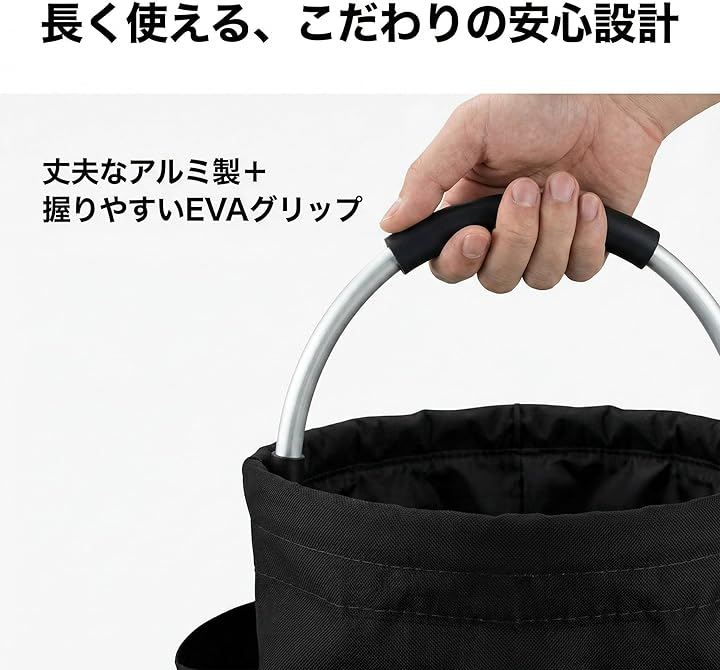 「丈夫で持ちやすい設計」厚手ポリエステル+アルミ製ハンドル+EVAグリップで耐久性抜群。