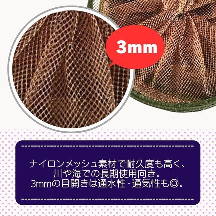 網目は通水性も良く、匂い残りもしにくい設計のため、釣りだけでなく、アウトドアやバーベキュー、水辺のキャンプでも活躍します。