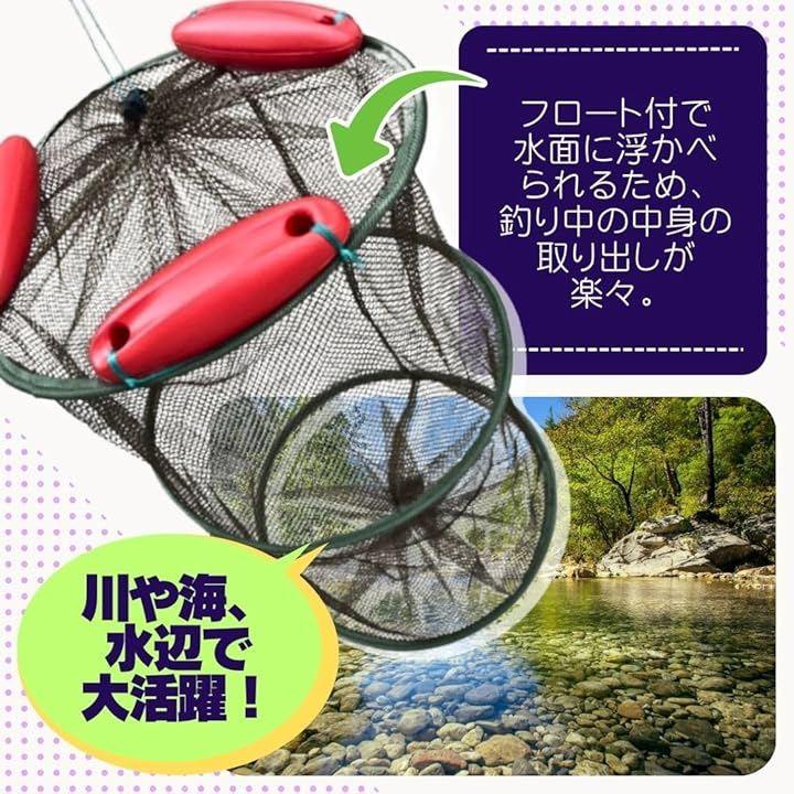 川や海などさまざまな環境で使いやすく、魚・カニ・エビなど多様な水生生物に使用可能。