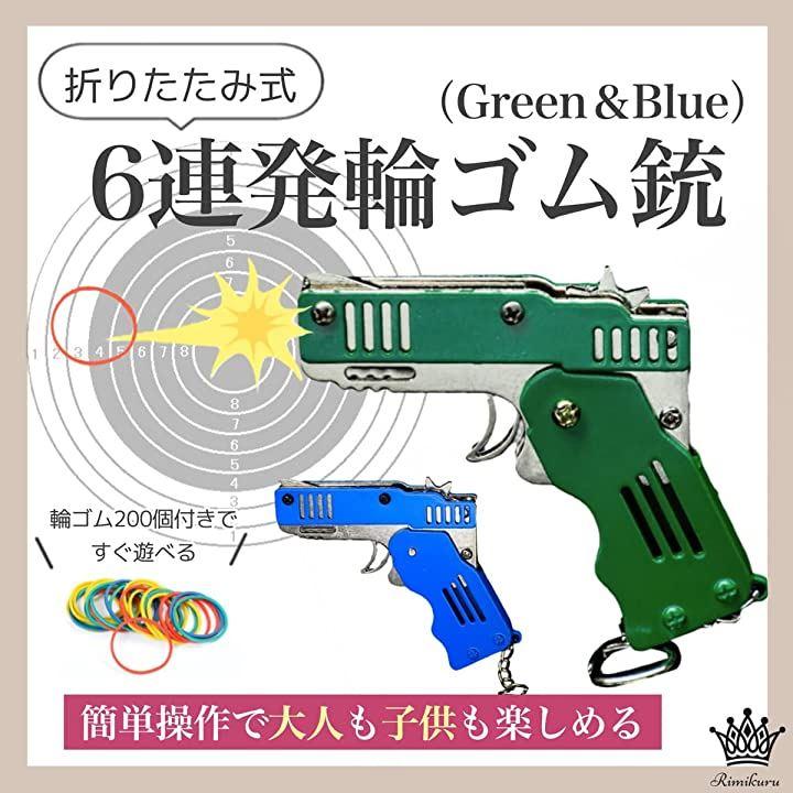 ・折り畳み式 6連発式輪ゴム 銃 お得な2個セット:お子様同士や親子で楽しめる 折り畳み式 6連発式輪ゴム 銃 ブルー・グリーン2個セットになります。