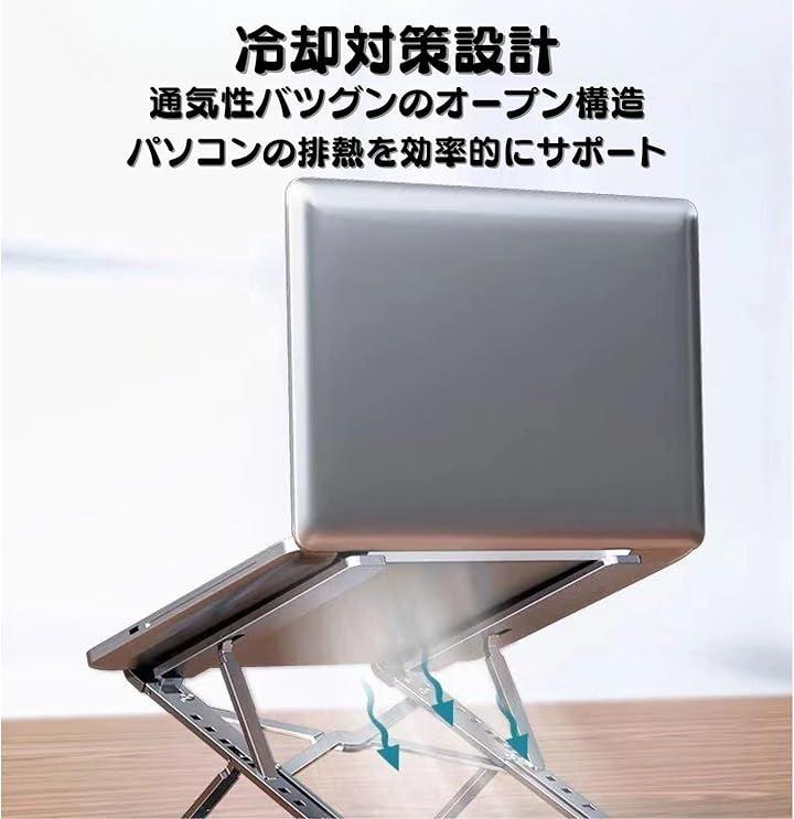 頑丈なアルミ合金素材を採用しており、高い安定性と耐久性を兼ね備え、大型のノートPCにも対応可能です。