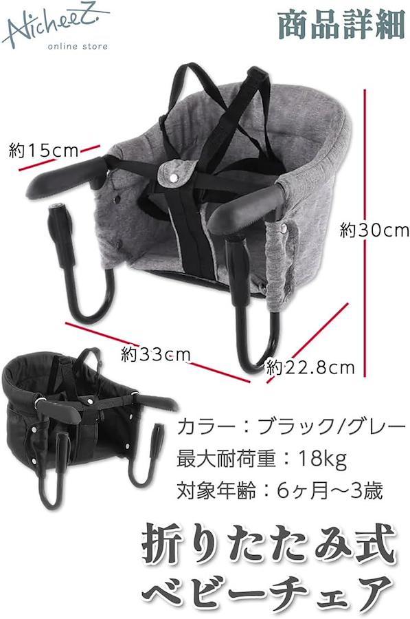「商品内容」ベビーチェア カラー:ブラック/グレー サイズ:幅/約33cm 奥行き/約22.8cm 高さ/約30cm 最大耐荷重:18kg 対象年齢:6ヶ月~3歳