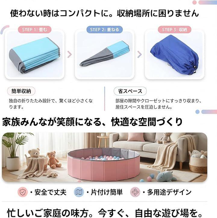 「自由な遊び場」この折りたたみ式ボールプールは、お子様の創造力を引き出す理想的な遊び場です。