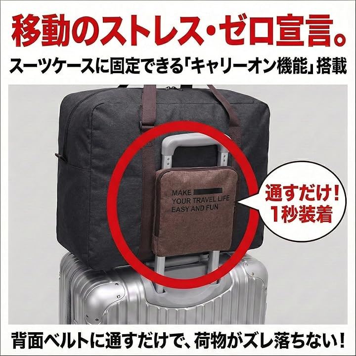 マルチに頼れるサブバッグ」 旅先でついつい買いすぎたお土産、ジムの着替え、コインランドリーへの家族分の洗濯物など、日常のあらゆる「荷物」をポンポン入れられる頼もしい存在です。