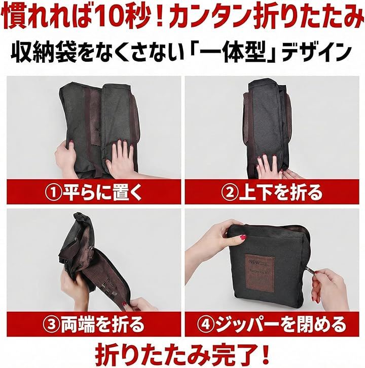 使わない時は厚さ数センチ(約18x20cm)に畳んでバッグの隅へ。