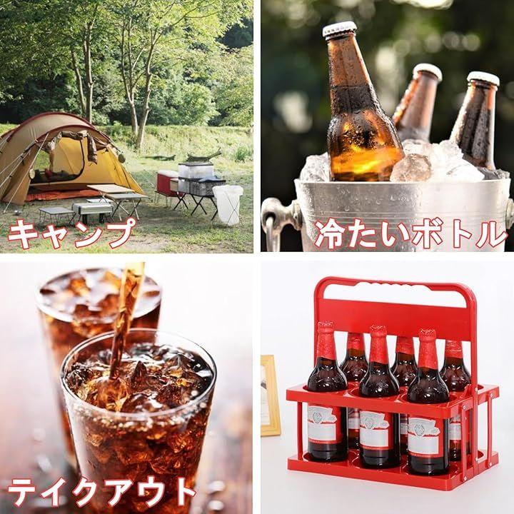 このキャリアーでは、ボトルを傾けることなくキンキンに冷えた飲み物も、これで運ぶと手が冷たくなく、同時に何本も持ち運びできます。