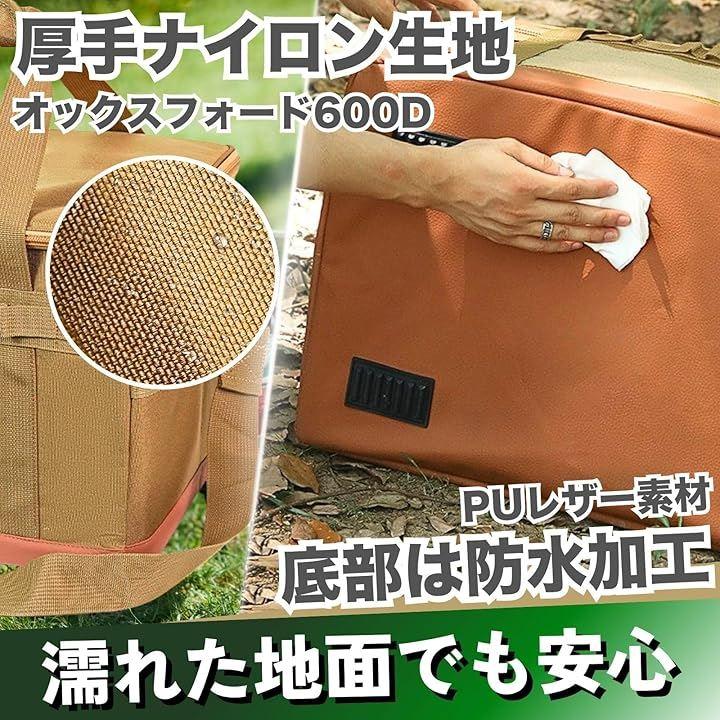 厚手で頑丈なナイロン生地(600D)に、底部には防水性のある厚手PUレザー素材を使用しているため屋外でも安心。