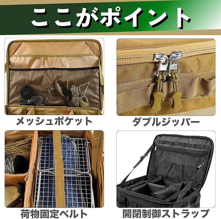 工具やギアを整理して持ち運びやすく、非常時の防災バッグとしても使えます。