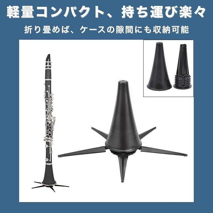 「クラリネット スタンド 折りたたみ」は、楽器を支えるシンプルで便利な5脚ブラック管楽器用スタンド。折りたたみ式で持ち運びもラクラク。