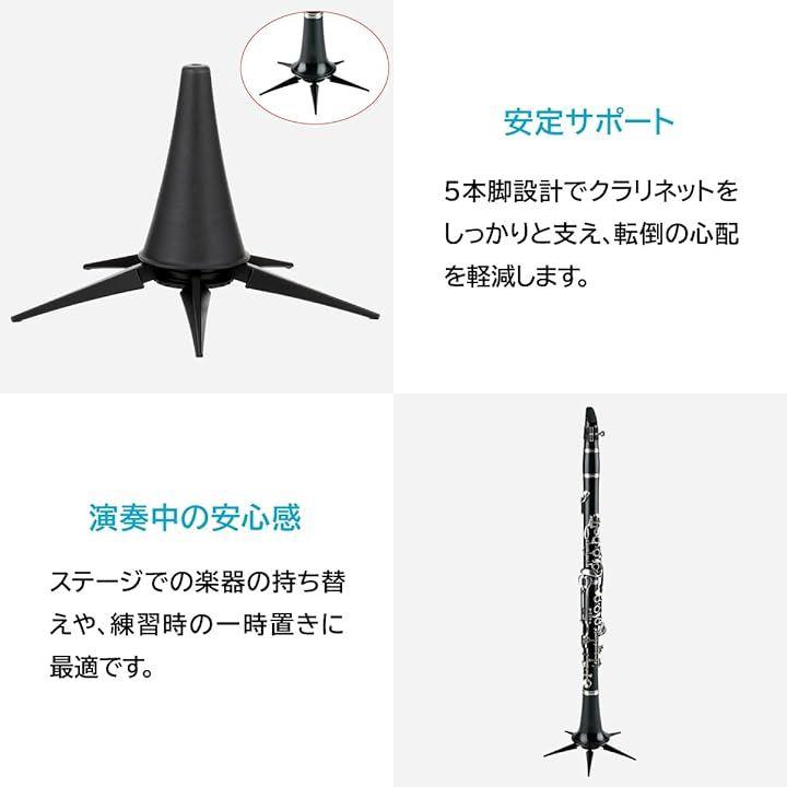 5本脚の設計でクラリネットをしっかりと支え、転倒の心配を軽減します。