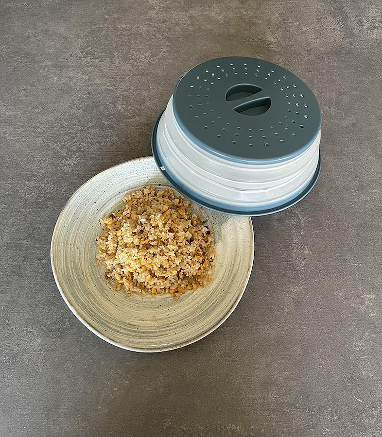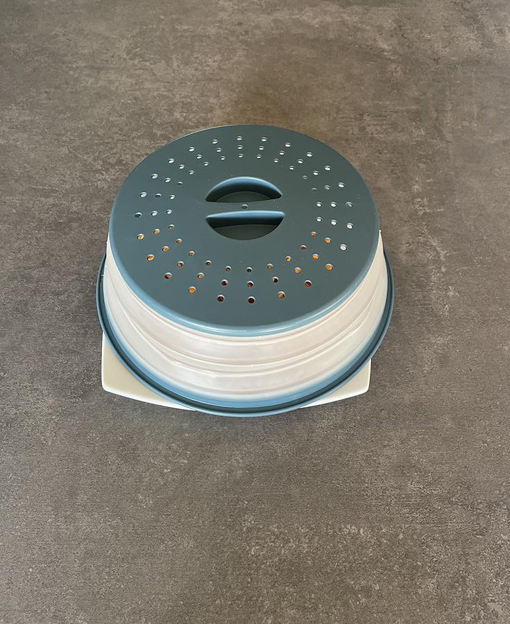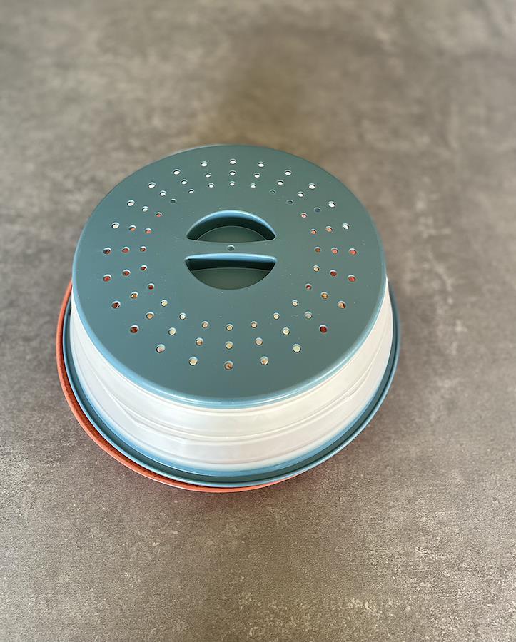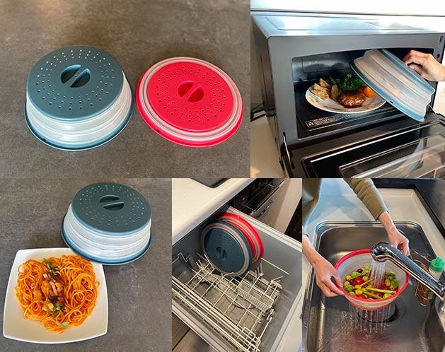 ★レンジカバー&ザルの2WAYタイプ!*レンジカバーとして又ザルとしても使えて、収納時は畳んで2.5cmになります。*かさばらないので、収納に便利。*レンジ後のフードカバーとしてご利用頂け、ラップ要らずです。