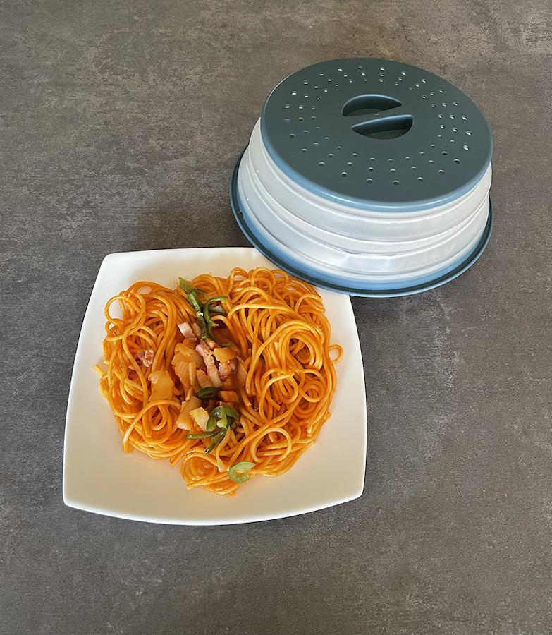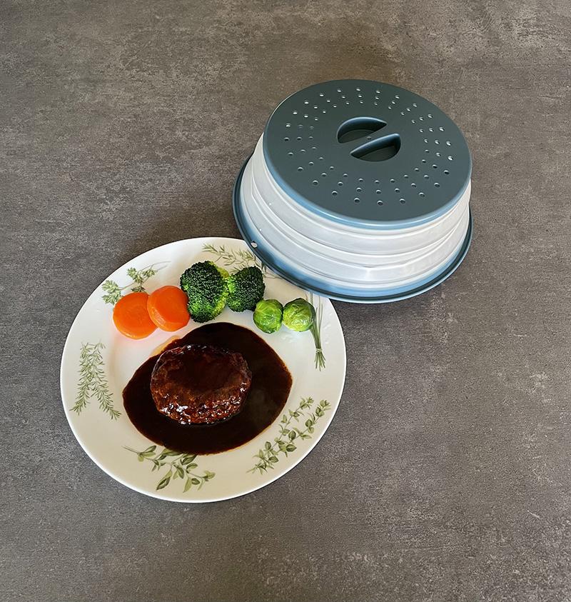 ★レンジカバー&ザルの2WAYタイプ!*レンジカバーとして又ザルとしても使えて、収納時は畳んで2.5cmになります。*かさばらないので、収納に便利。*レンジ後のフードカバーとしてご利用頂け、ラップ要らずです。