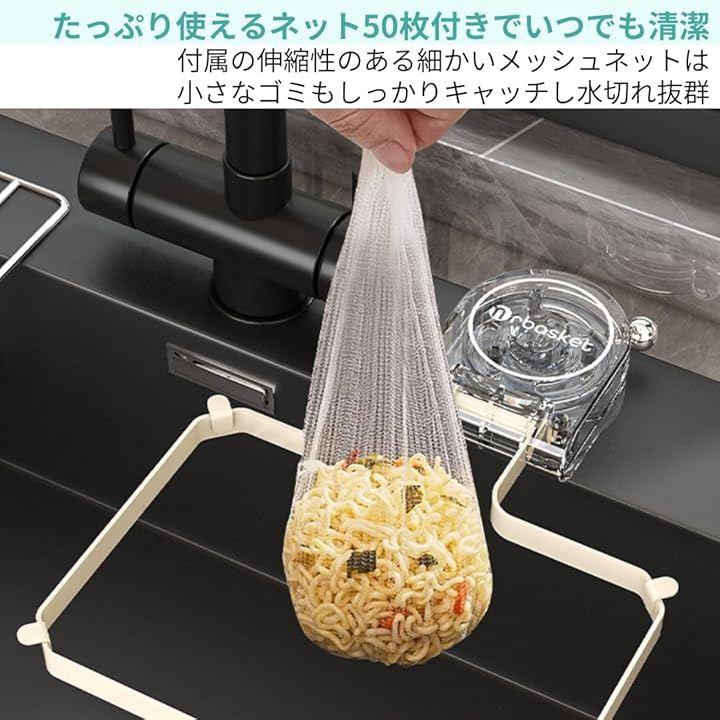 付属の伸縮性のある細かいメッシュネットは、小さなゴミもしっかりキャッチし水切れ抜群。