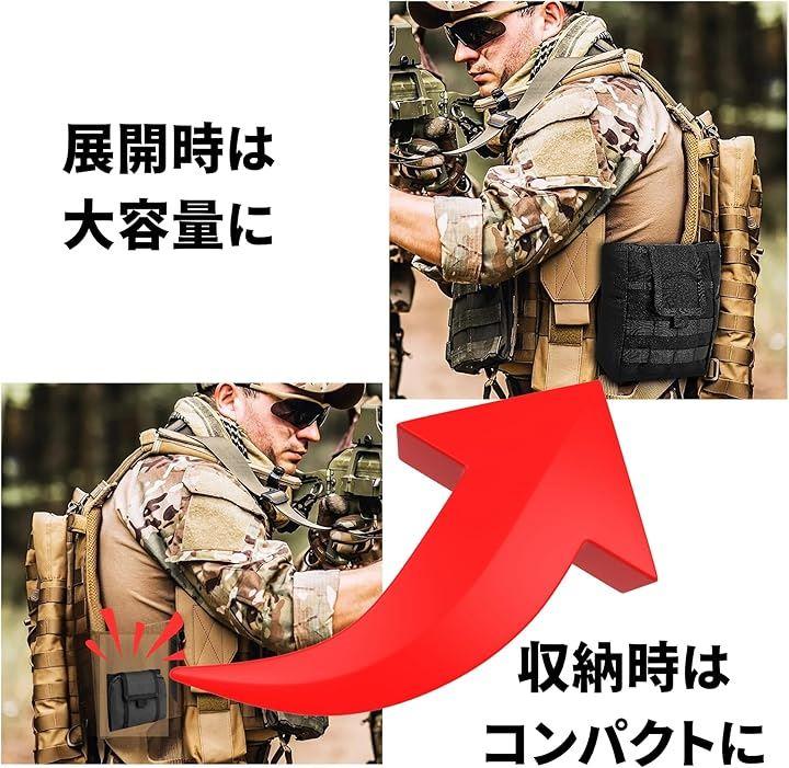 折り畳み式 大型ダンプポーチは、使用時は大容量、不要時は畳んで超コンパクトに小型ダンプポーチとして携帯可能。サバゲーから作業用まで活躍する腰袋です。