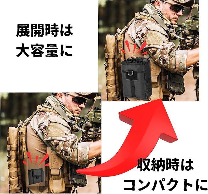 折り畳み式 大型ダンプポーチは、使用時は大容量、不要時は畳んで超コンパクトに小型ダンプポーチとして携帯可能 サバゲーから作業用まで活躍する腰袋です。