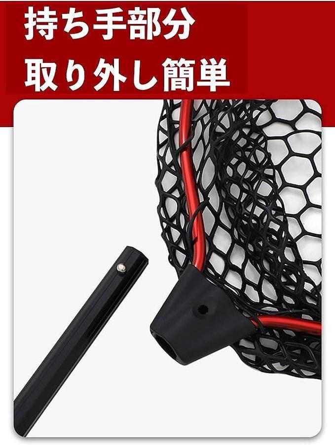 ネットには魚が傷つきにくいゴム素材を使用しており、 網のハンドル部分は、滑りにくい素材で出来ています。