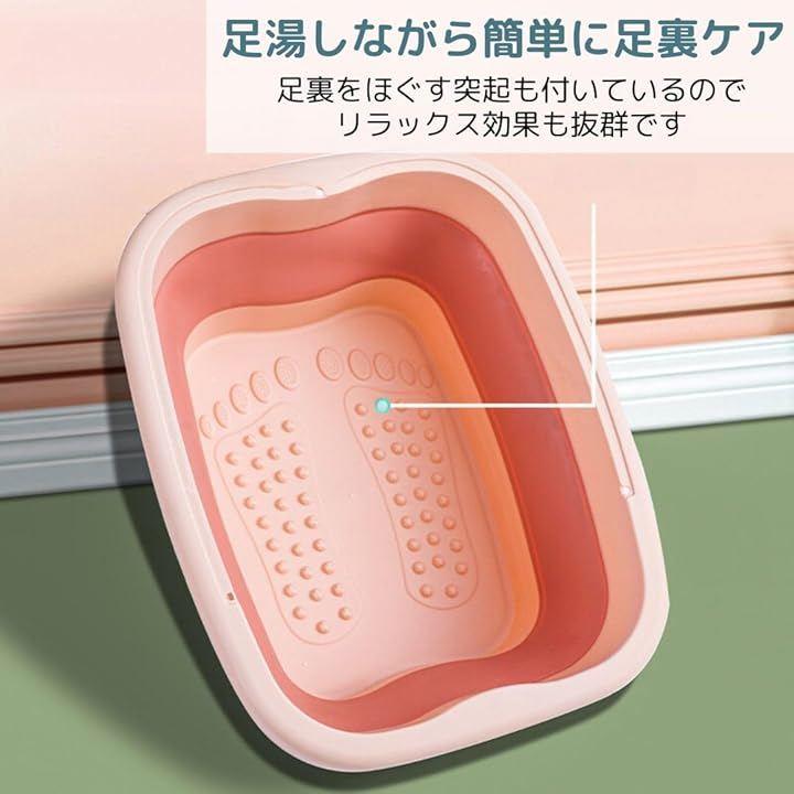 「折りたたんでコンパクト収納。持ち運びもラクラク」折りたたみ式で高さ約6cmまでコンパクトにできるフットバス。
