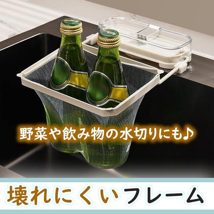 ネットを吊り下げた状態で使うことで生ごみや食べ残しの水分が自動的に排出されるため、三角コーナーのようにヌメる心配がありません。