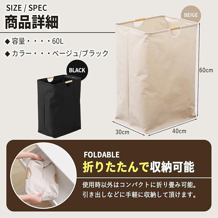 大型60Lで一気に片付く:大容量60リットルの洗濯かごで、一度にたくさん収納可能。