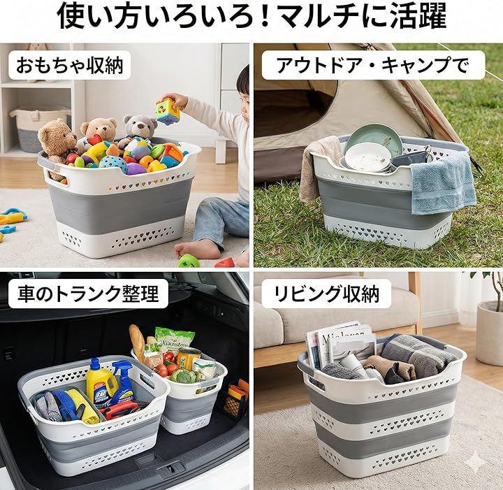 「大容量ながら多目的に使える多機能設計」 洗濯物だけでなく、おもちゃ入れやキャンプ時の水汲み、洗車道具の保管など多目的に活躍。