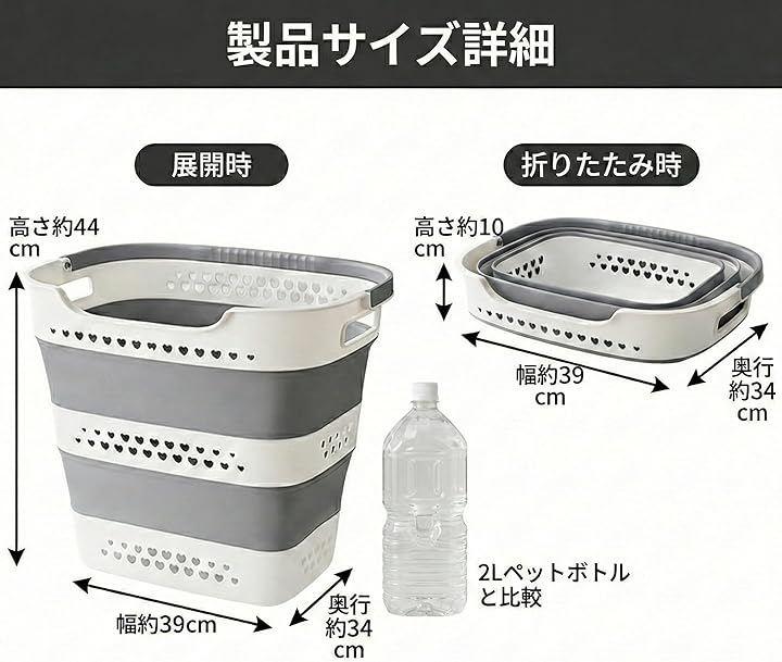 狭い洗面所でも空間を広く使える、省スペースに特化した洗濯かごです。