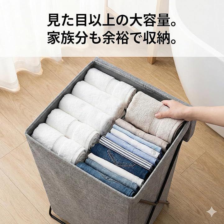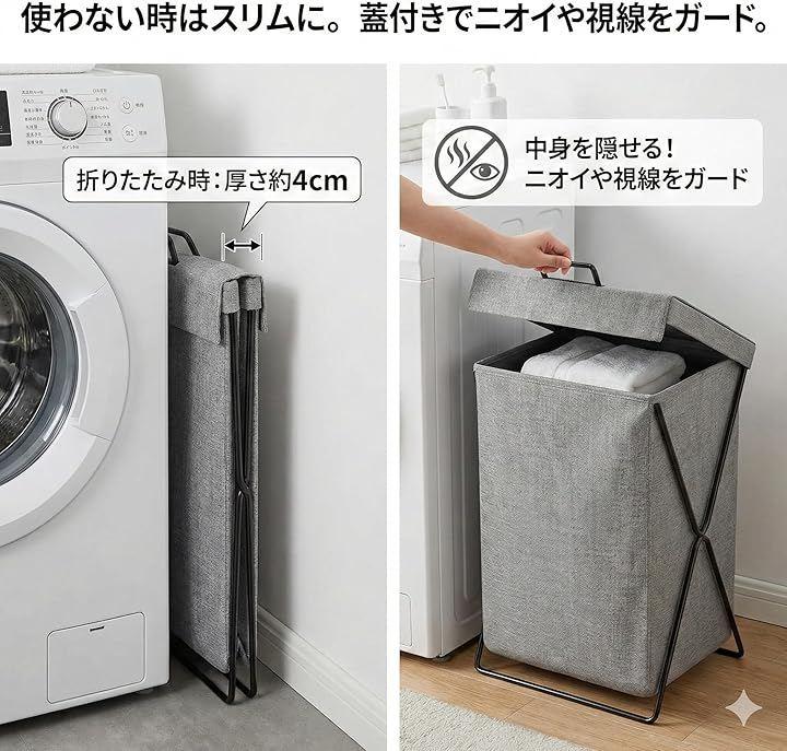 狭い脱衣所でも場所を取らず、空間を広く使える省スペースなランドリーバスケットです。