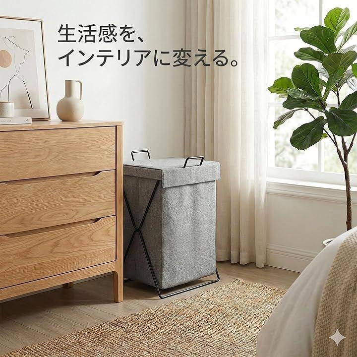 必要な時だけ取り出して広々使える、機能的なX型フレーム構造の折りたたみ式洗濯かごです。