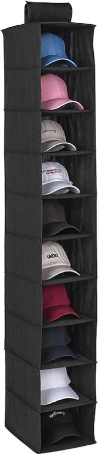 「すべて保存」10段の個別棚で帽子をしっかりと収納。