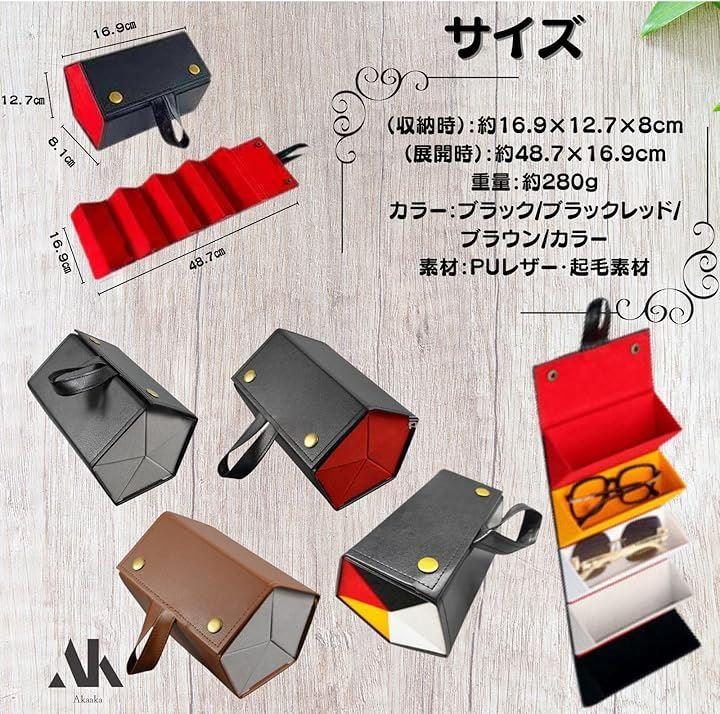 「商品スペック」サイズ(収納時):約16.9x12.7x8cm、サイズ(展開時):約48.7x16.9cm、重量:約280g、カラー展開:ブラウン/ブラック/レッド/カラー 素材:PUレザー・起毛素材