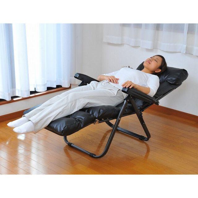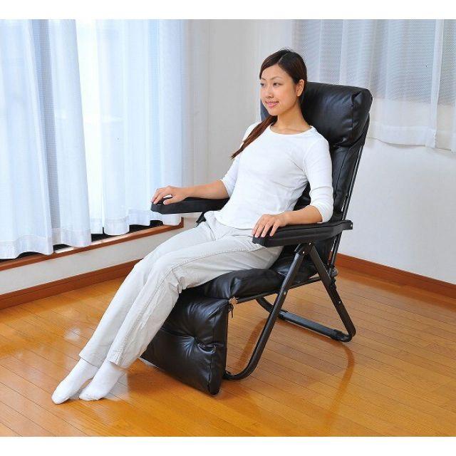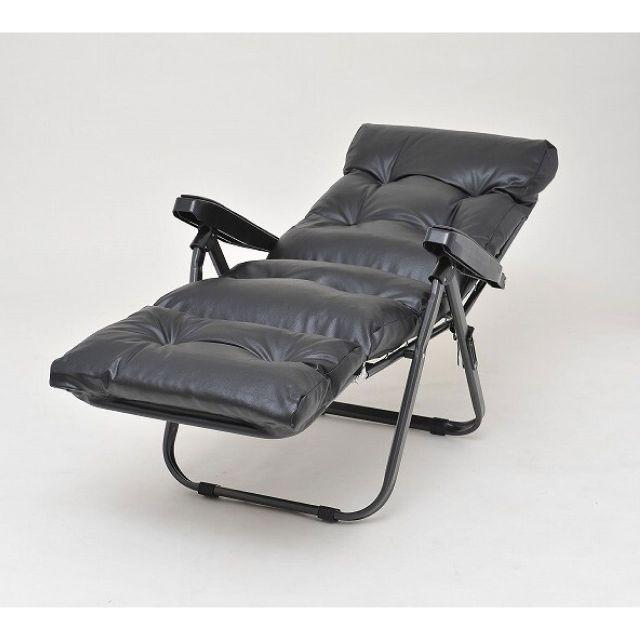 ◎合成皮革が高級感を出す、リクライニング機能付きのリラックスチェア◎ボリュームたっぷりのクッションで座れば快適◎クッション部を外せば折りたたみも可能。◎背もたれは6段階、フットレストは14段階のリクライニングで、お好みの姿勢で。