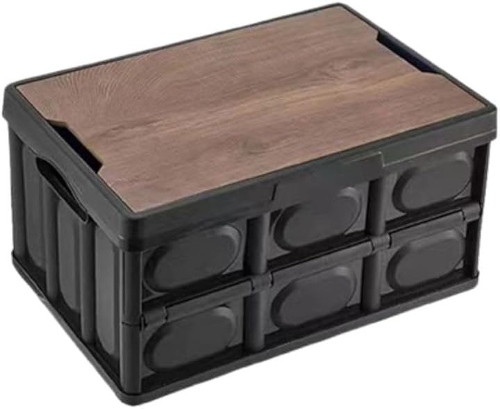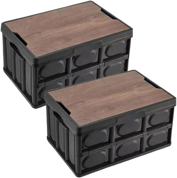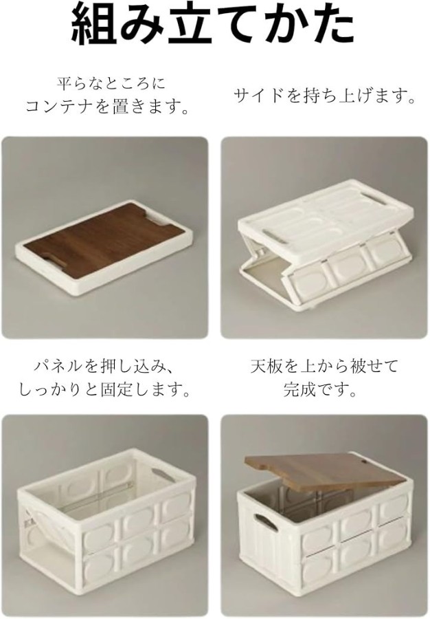「おしゃれな木蓋デザイン」シンプルで洗練されたデザインが魅力の木蓋つき折りたたみ収納コンテナです。