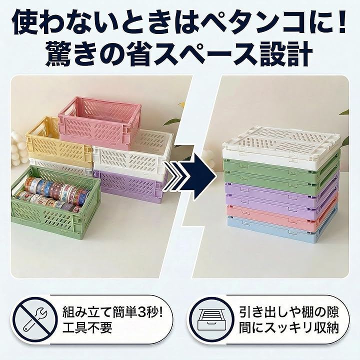「商品説明」折りたたんでスリムに収納できる、便利なミニ収納コンテナ4個セットです。