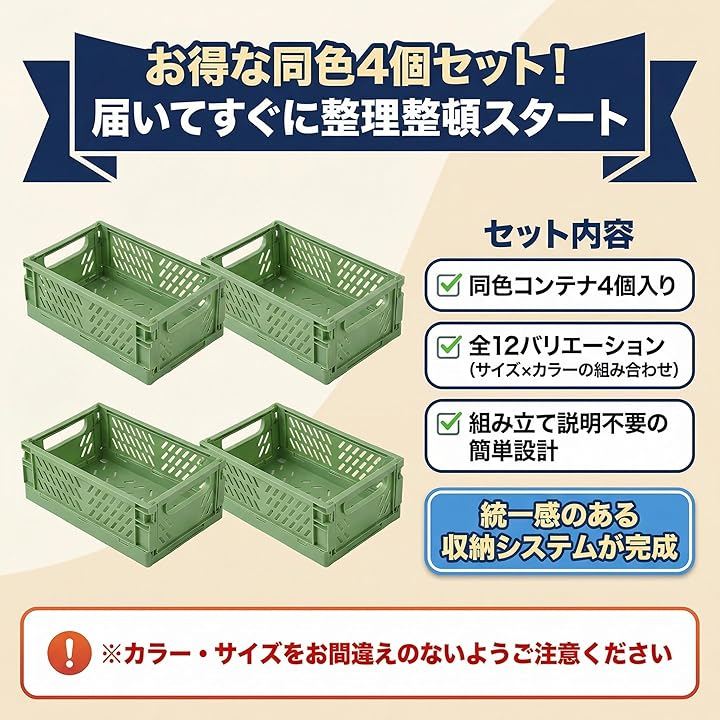 同色4個セットで統一感があり、探し物の時間を大幅短縮して毎日の暮らしを快適にします。