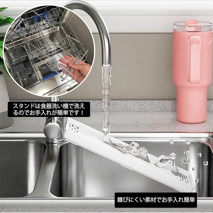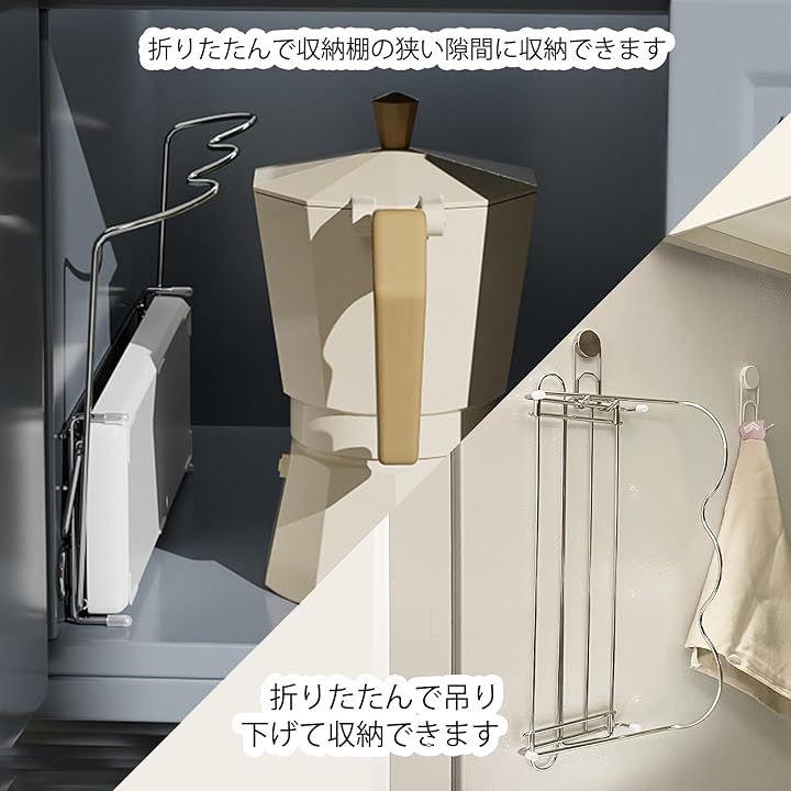 「コンパクトでスペースを節約」:使用しない時、ジャグ・ボトル・スタンドは簡単に折りたためられ、引き出しや流しの下など、狭いスペースに保管できます。