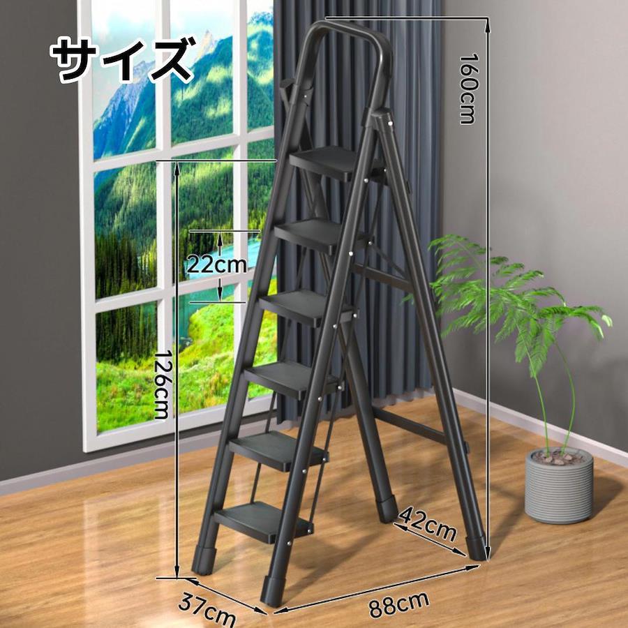 | サイズ | 6段タイプ 使用時 幅42cm×奥行88cm×高さ160cm 折りたたみ時:幅42cm×奥行6cm×高さ170cm 耐荷重:150kg |