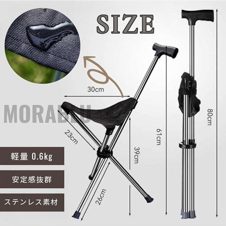 移動時は歩行補助に、休憩時は安定した椅子として使用できます。