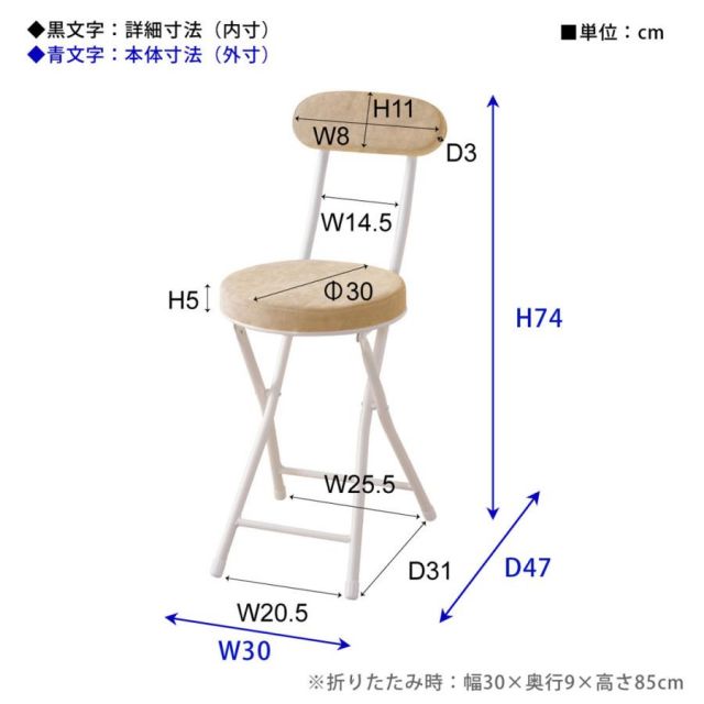 (折りたたみ時】幅30×奥行9×高さ85cm)