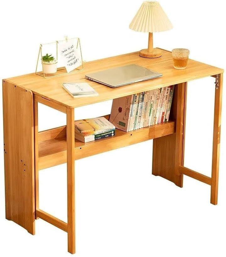 「天然竹製、厚い素材で安心」 この折りたたみデスクは、天然竹を使用し、防水・防塵加工済み。