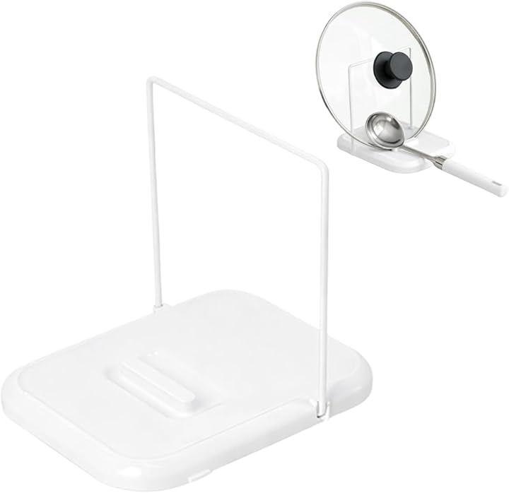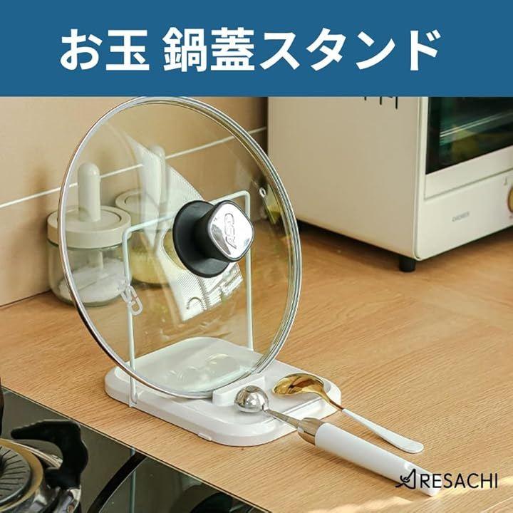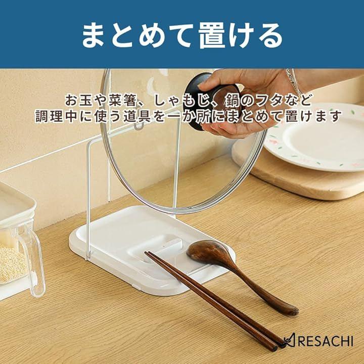 「調理中の一時置きをすっきりまとめる折りたたみスタンド」調理中に置き場に迷いがちなお玉や鍋蓋、菜箸などをまとめて支えられる構造です。