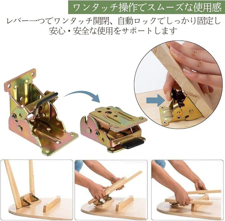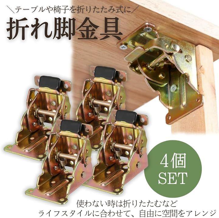 「テーブル・椅子を折りたたみ式に」テーブルや椅子を折りたたみ式にできる折れ脚金具4個セット。