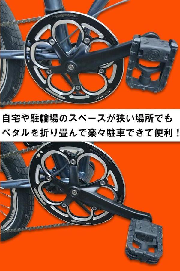 一番の特徴。折り畳み式ペダルで狭い場所でも楽々駐輪