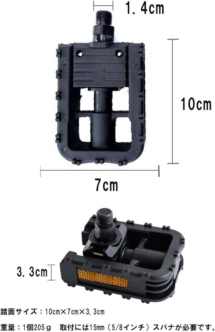 踏面サイズ:10cmx7cmx3.3cm 重量:1個205g 取付には15mm(5/8インチ)スパナが必要です。