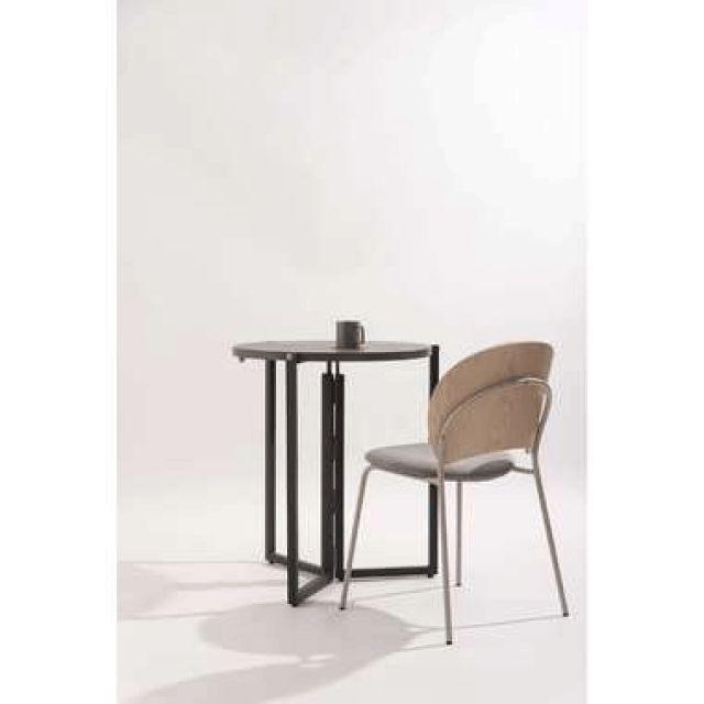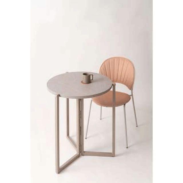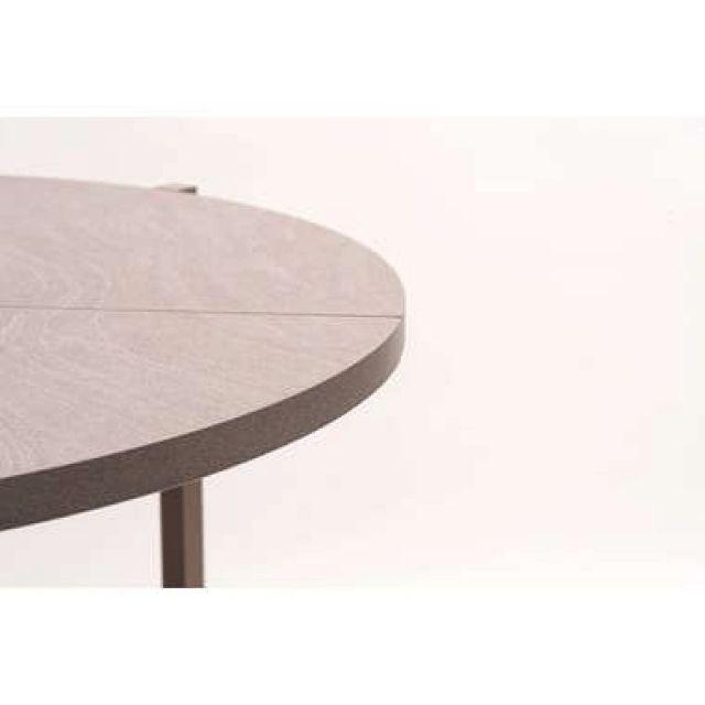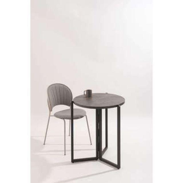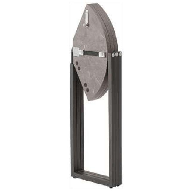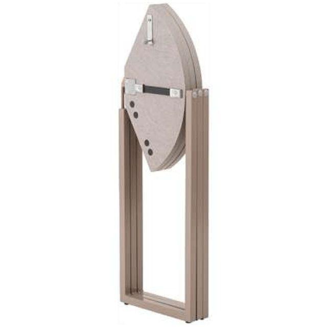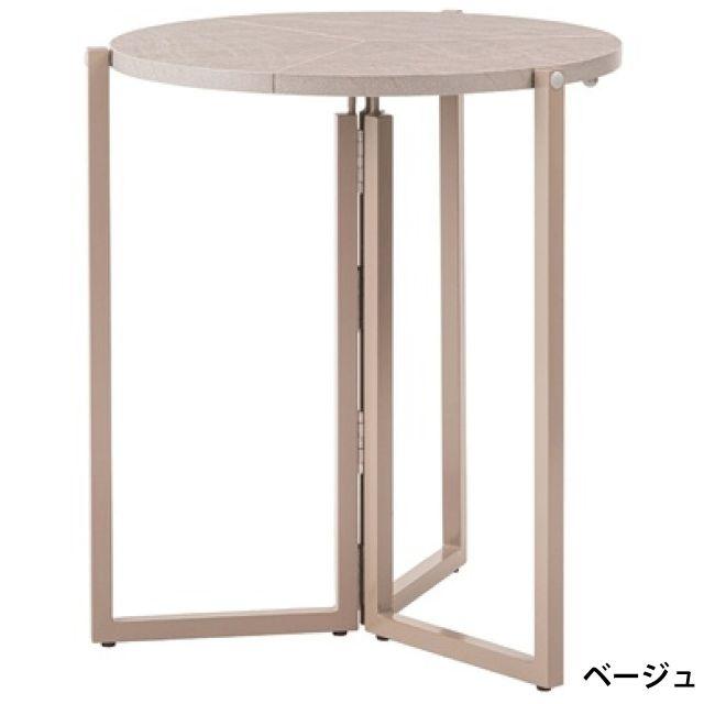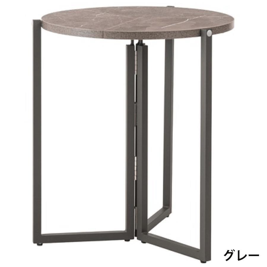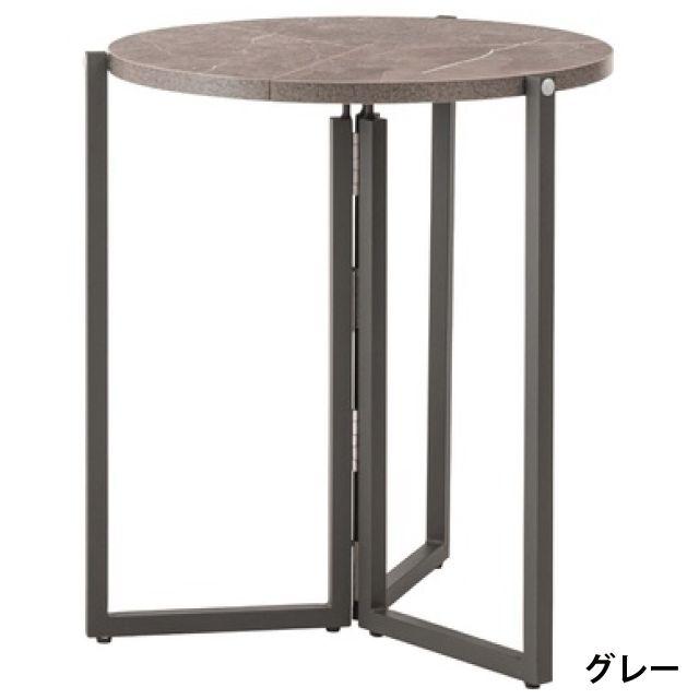【上品な石目模様とスマートな佇まい】落ち着きのある石目調の色合いが魅力のフォールディングラウンドテーブル。天板を折りたためばスリムな形状になり、家具のすき間や壁際などにも立てかけて省スペースに収納できます。美しい石目模様の天板が空間にモダンで洗練された印象をもたらします。脚部には重厚感のあるスチール素材を採用し、直線的で安定感のあるデザインに仕上げました。●折りたたんでコンパクトに収納●天板裏に持ち手付●天板裏にハンドルロックの留め具付●美しい石目調の天板●アジャスター付