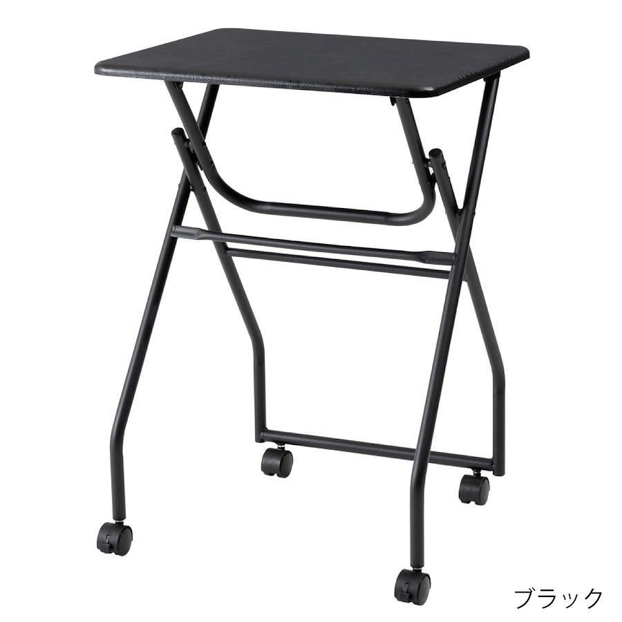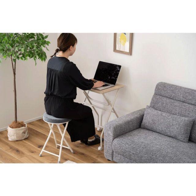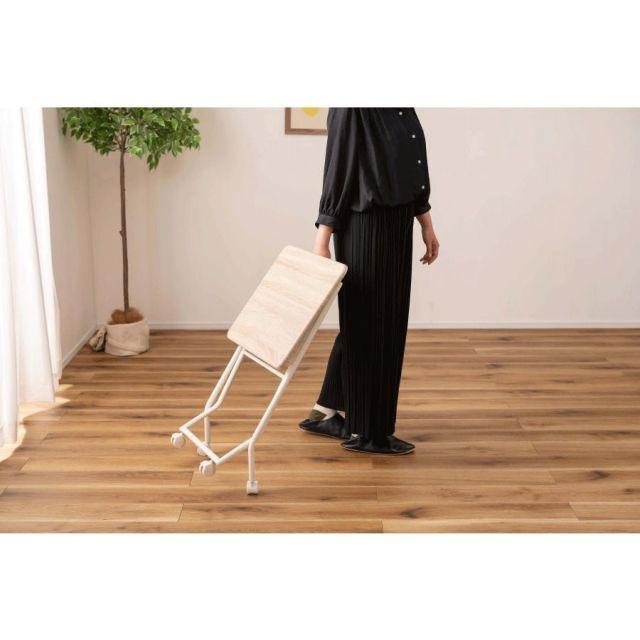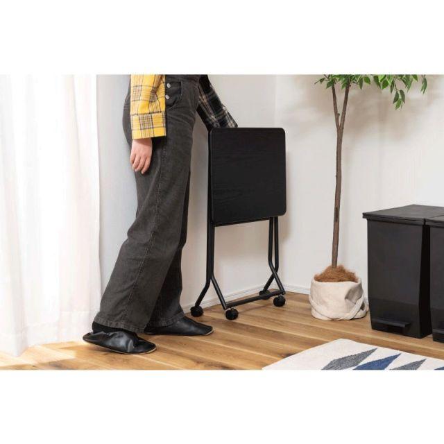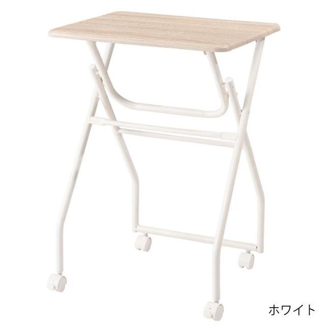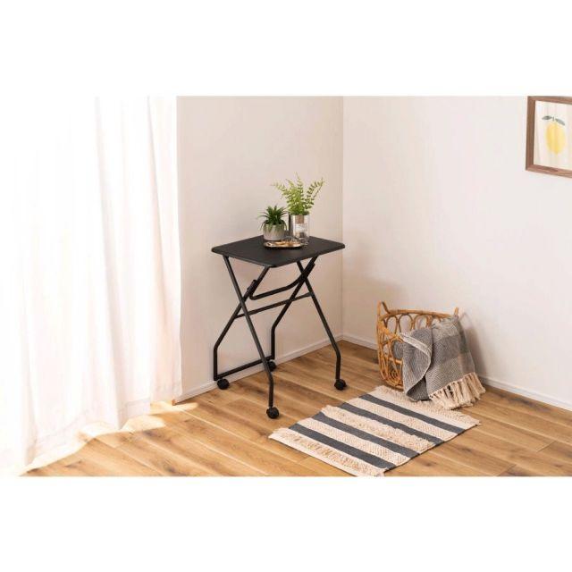 ●様々なシーンで活躍するフォールディングテーブル。●ちょっと作業スペースが欲しい時に、手軽に使える便利なテーブル。●キッチンの補助テーブル、簡易デスクや飾り場など、使い方は様々。●折り畳んだ時に自立するので、使わないときはその場でコンパクトに収納可能。●キャスター付きなのでちょっとした移動もスムーズに。●キャスターにはストッパーが付いているので、しっかり固定させて使うことも可能。●天板は合成樹脂化粧繊維板を使用しているので、お手入れが簡単でいつでも清潔。