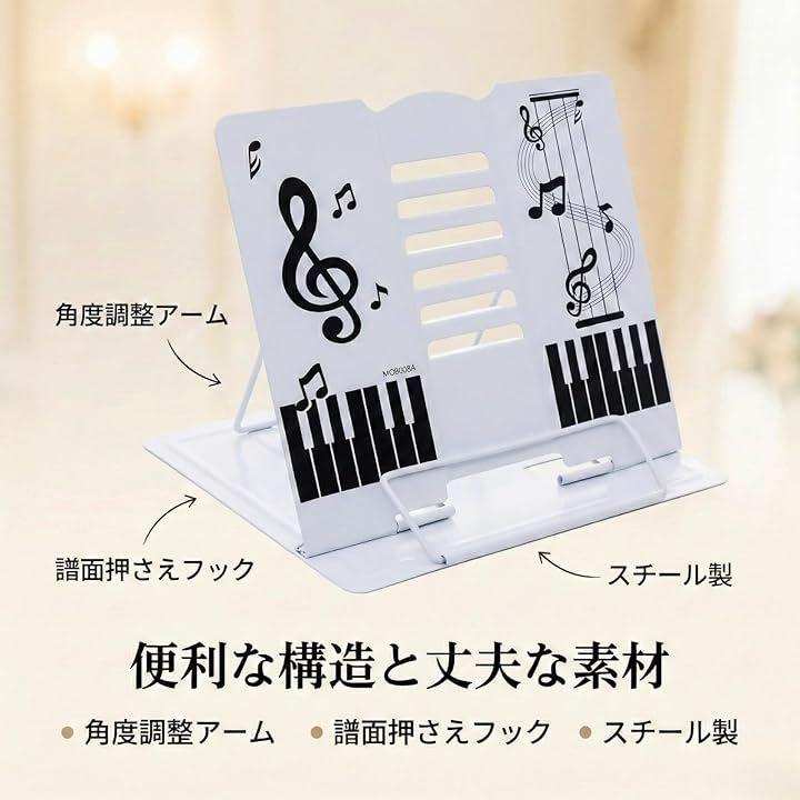 角度調節で見やすい:角度を変えて視線の位置に合わせやすく、譜面確認や読書、レシピ閲覧など幅広く活用できます。