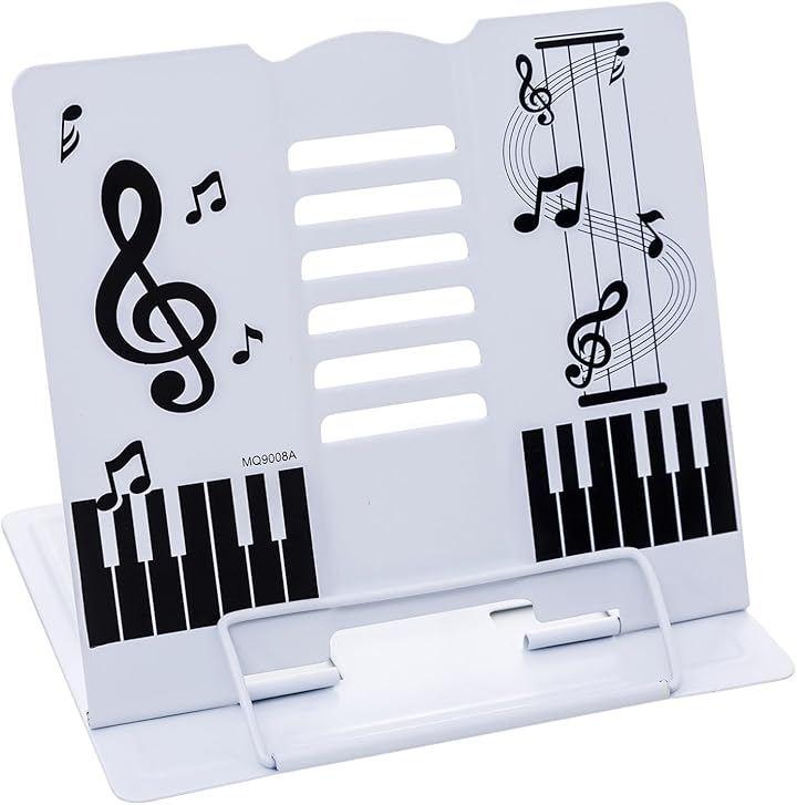 Folding Tabletop Music Stand, Steel, Adjustable Angle, Compact, Can be Used as a Reading Stand, Book Stand, or Tablet Stand, 19cm Wide x 21cm High, 17cm Base, Keyboard Design