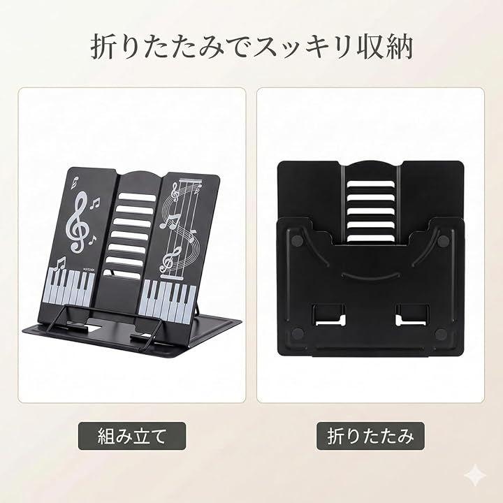 角度調節で見やすい:角度を変えて視線の位置に合わせやすく、譜面確認や読書、レシピ閲覧など幅広く活用できます。